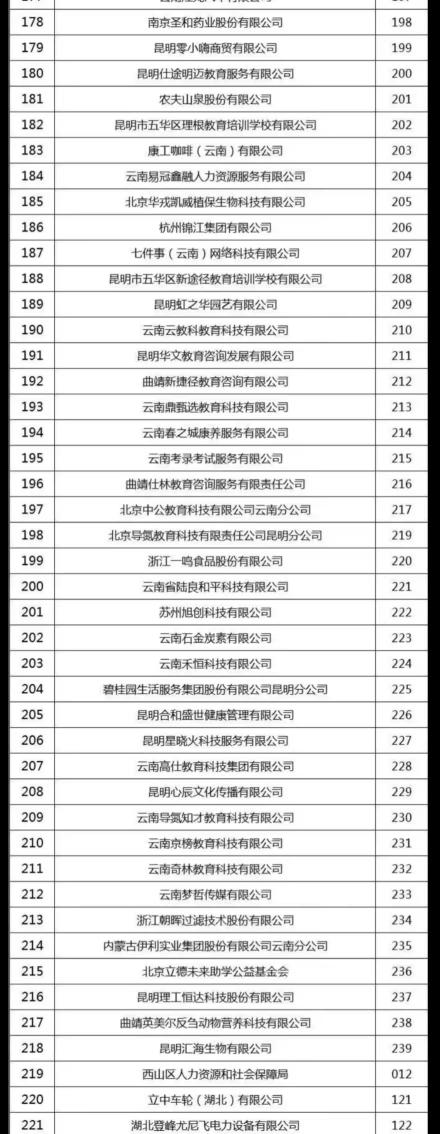 民企:农夫山泉有限公司、昆明心霖公社培训学校有限公司、山西建龙实业有限公司....
