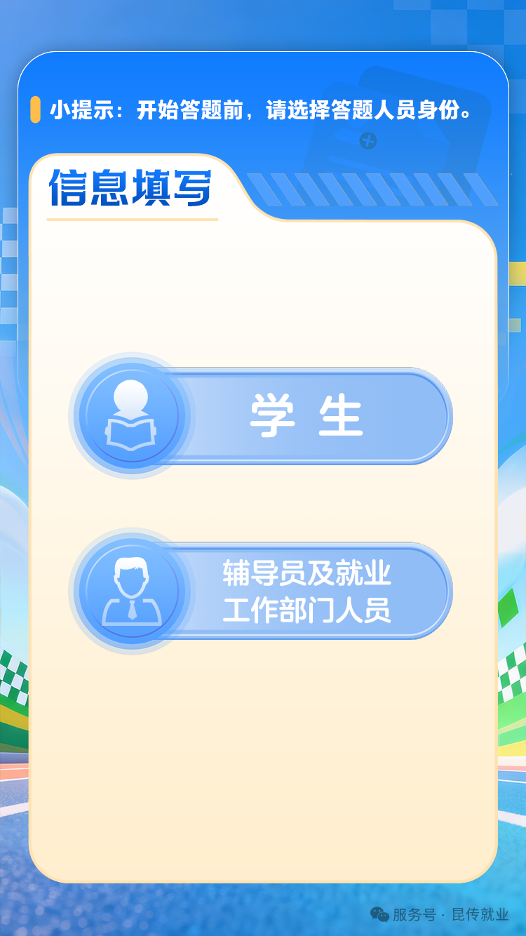3、参与答题前,需先选择答题人员类别,并填写相关信息。